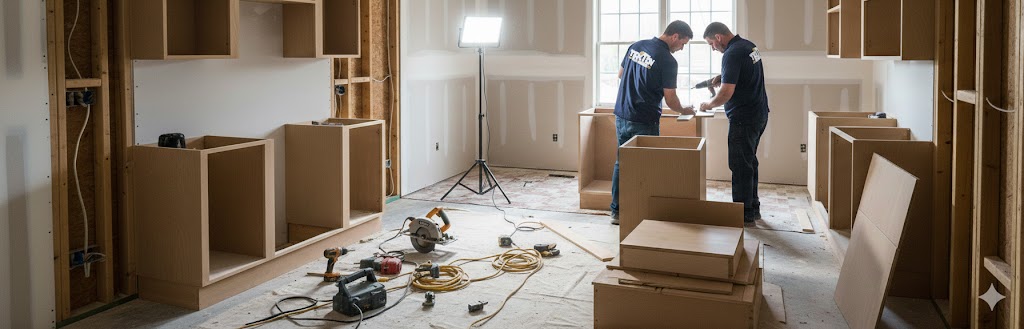 - Full kitchen remodels — cabinets, counters, layout